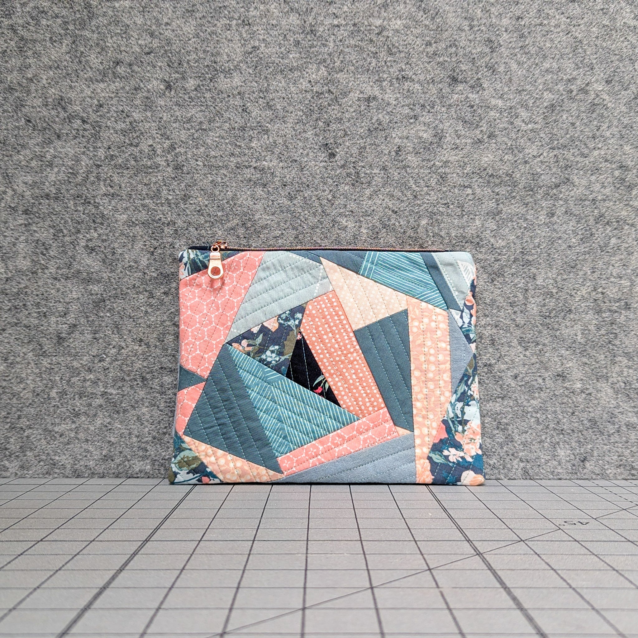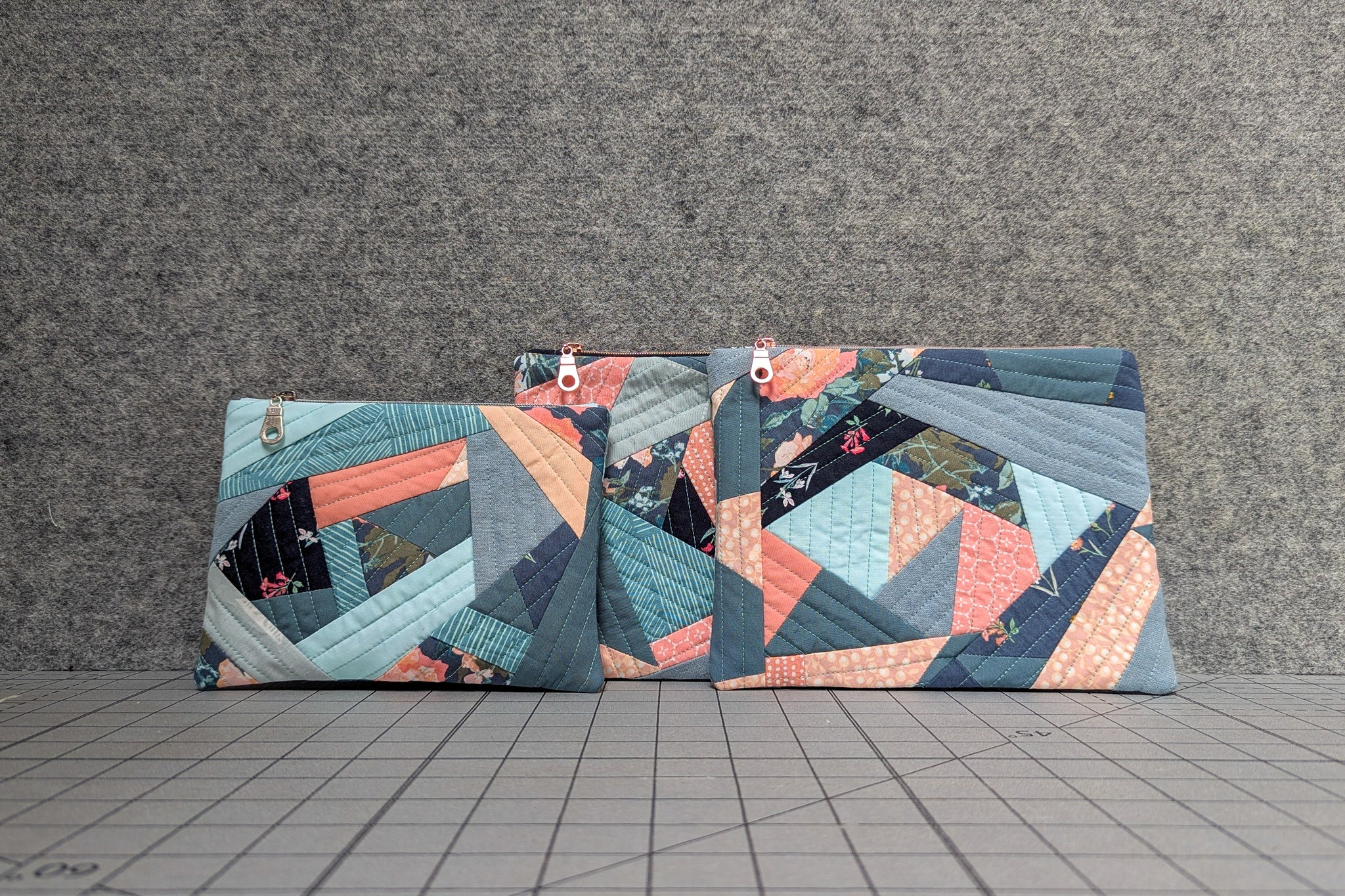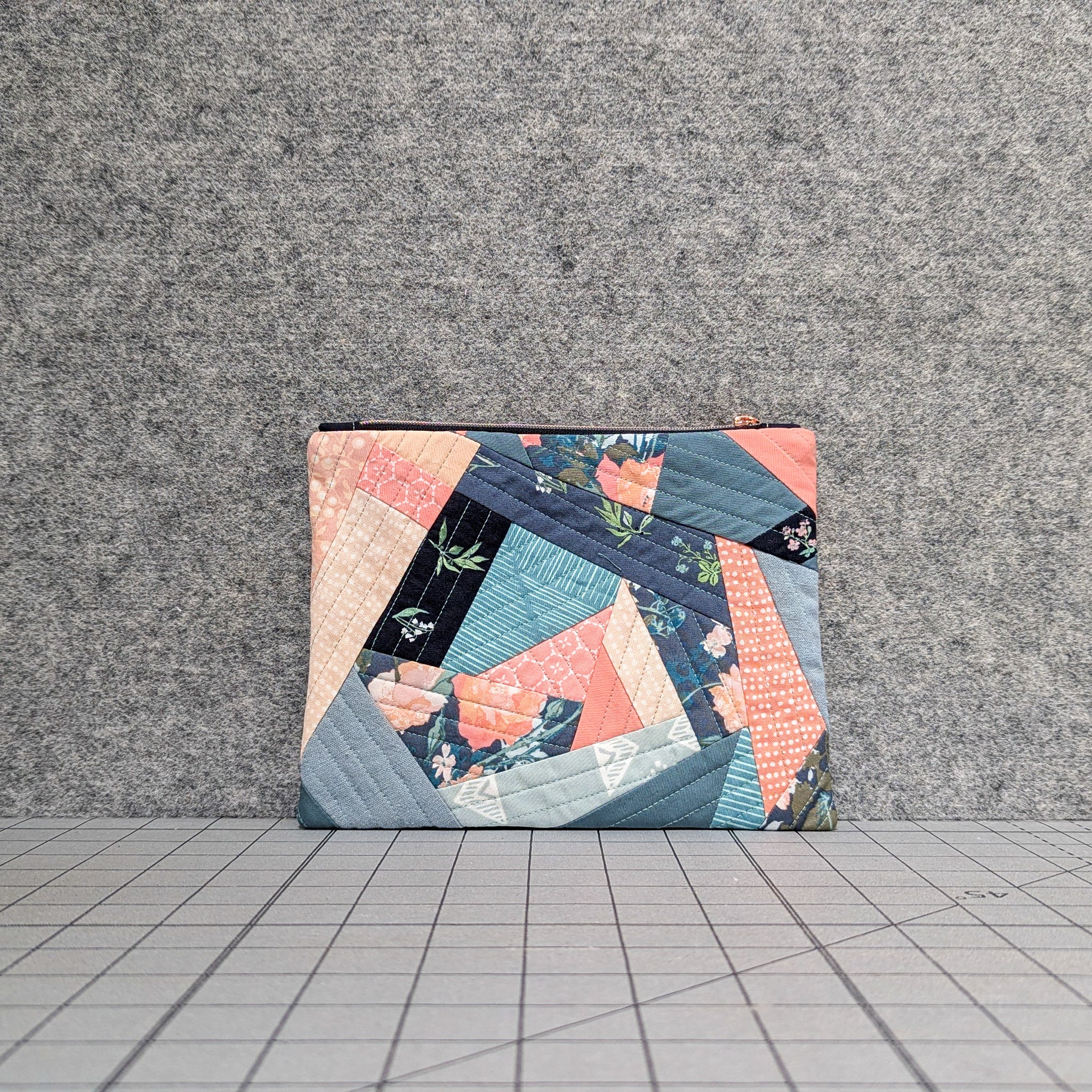 SCRAPPY ZIPPER POUCH: assorted fabric scrapscotton battingnylon zipper