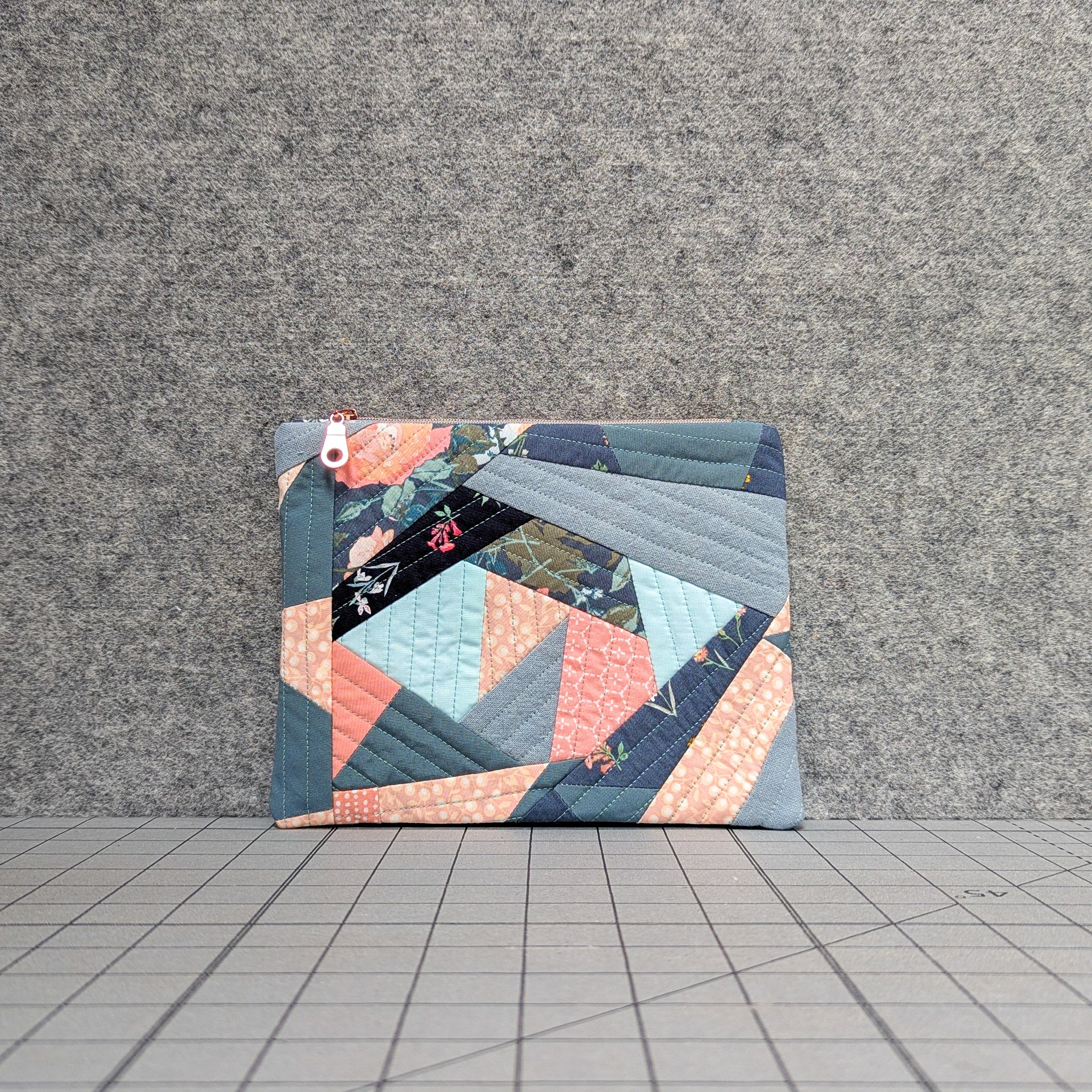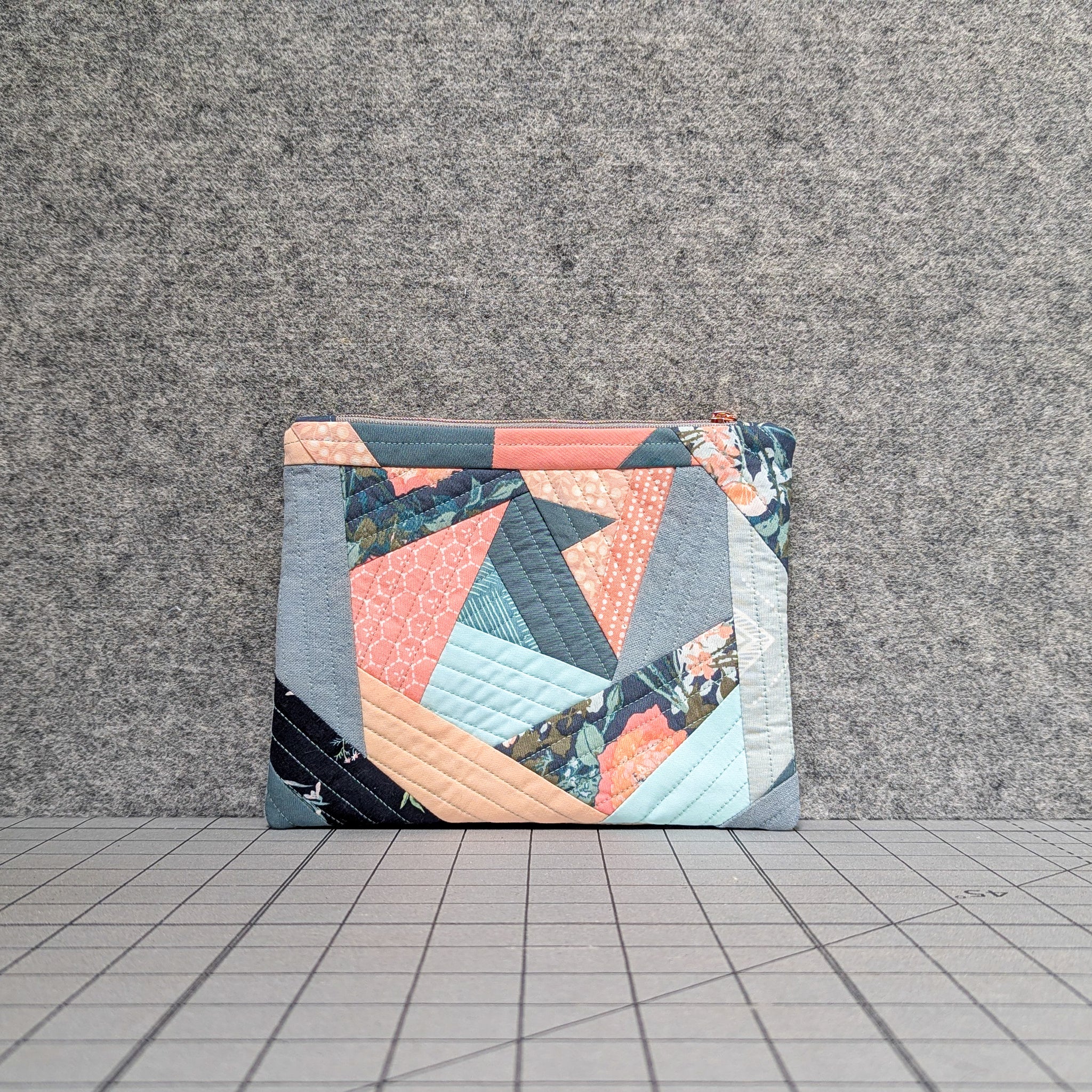 SCRAPPY ZIPPER POUCH: assorted fabric scrapscotton battingnylon zipper