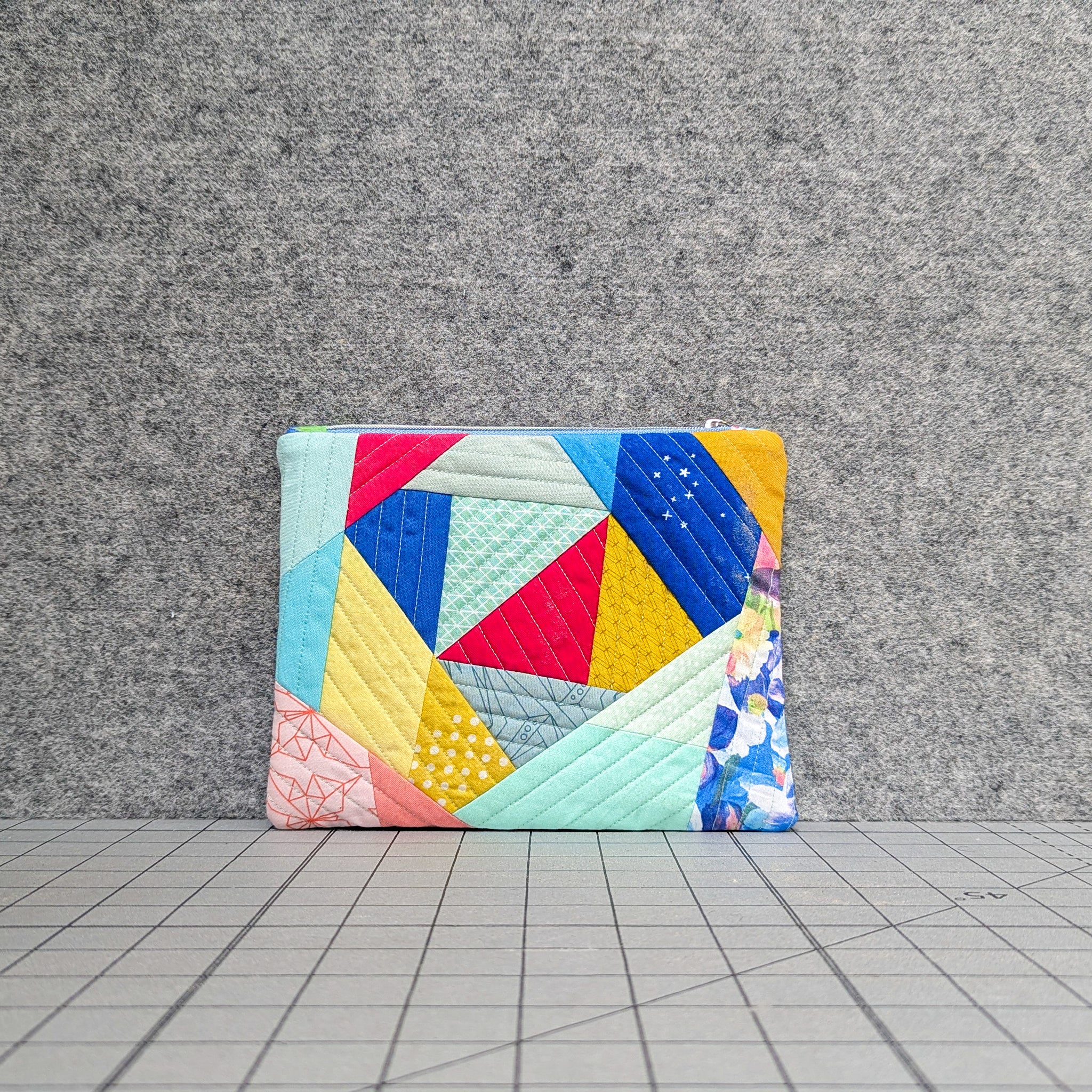 SCRAPPY ZIPPER POUCH: assorted fabric scrapscotton battingnylon zipper